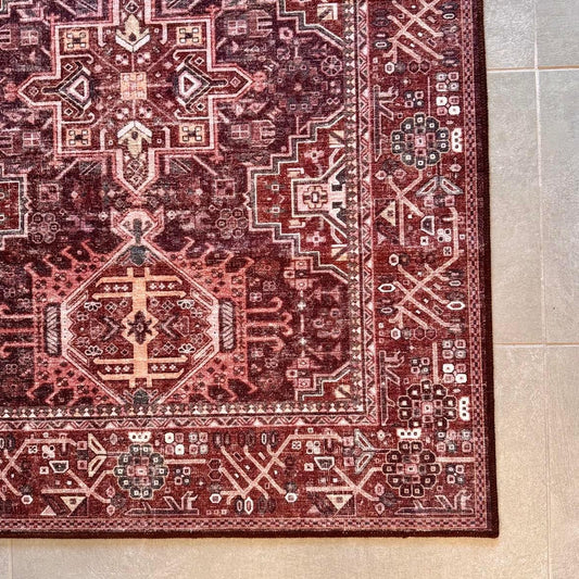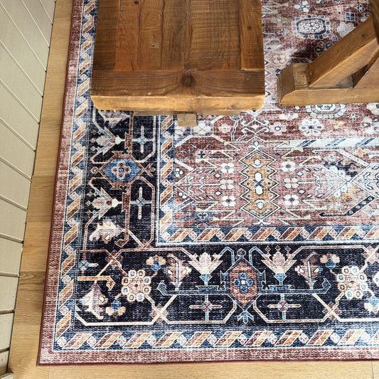 Mulberry Red and Denim MM-21 Machine Washable Rug