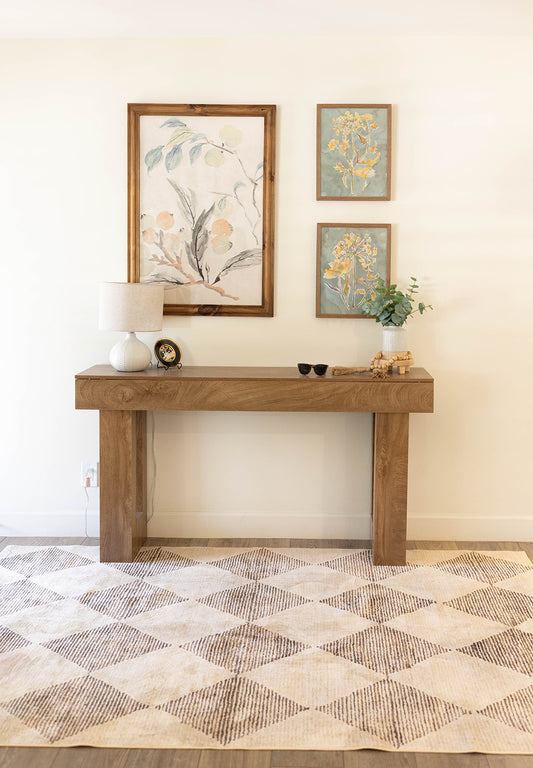 WE DESIGN each of our rugs with you guys in mind. Beautiful patterns for you to actually LIVE ON! Meaning all our rugs are WASHABLE and have ANTI-SLIP backing to hold in place.