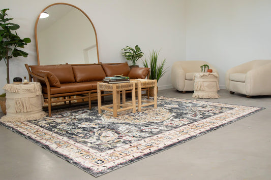 Black/Multi Medallion MM-05 Machine Washable Area Rug